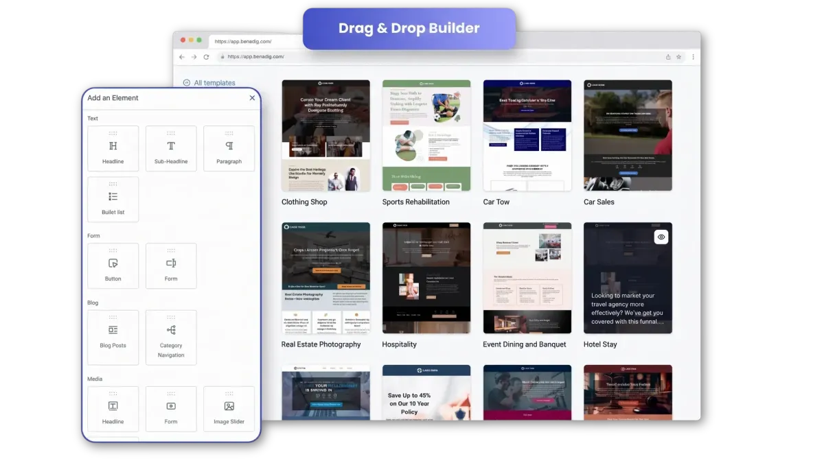 Create stunning websites & turn clicks into clients. Choose from thousand of our ready made templates to help you in your creation.