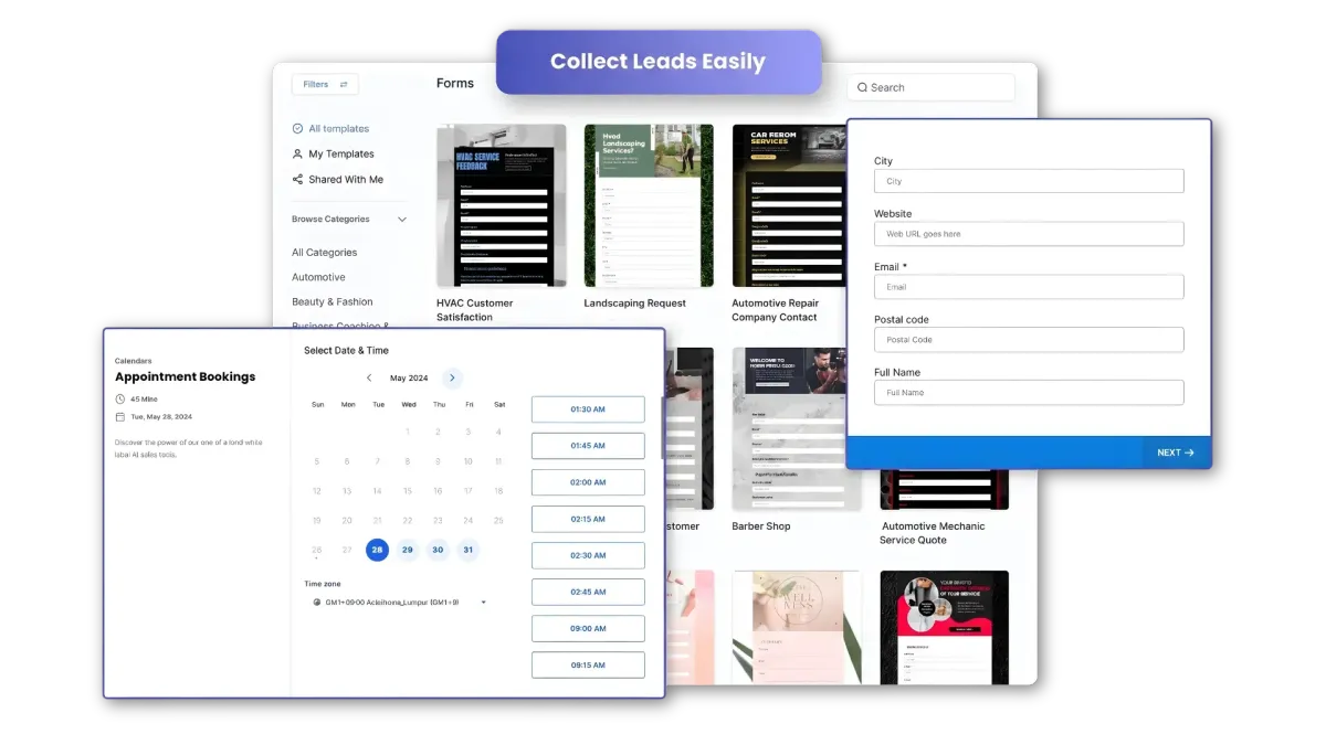 Deploy interactive forms, smart surveys, and seamless booking calendars that make it incredibly simple for clients to connect with you and book your services.